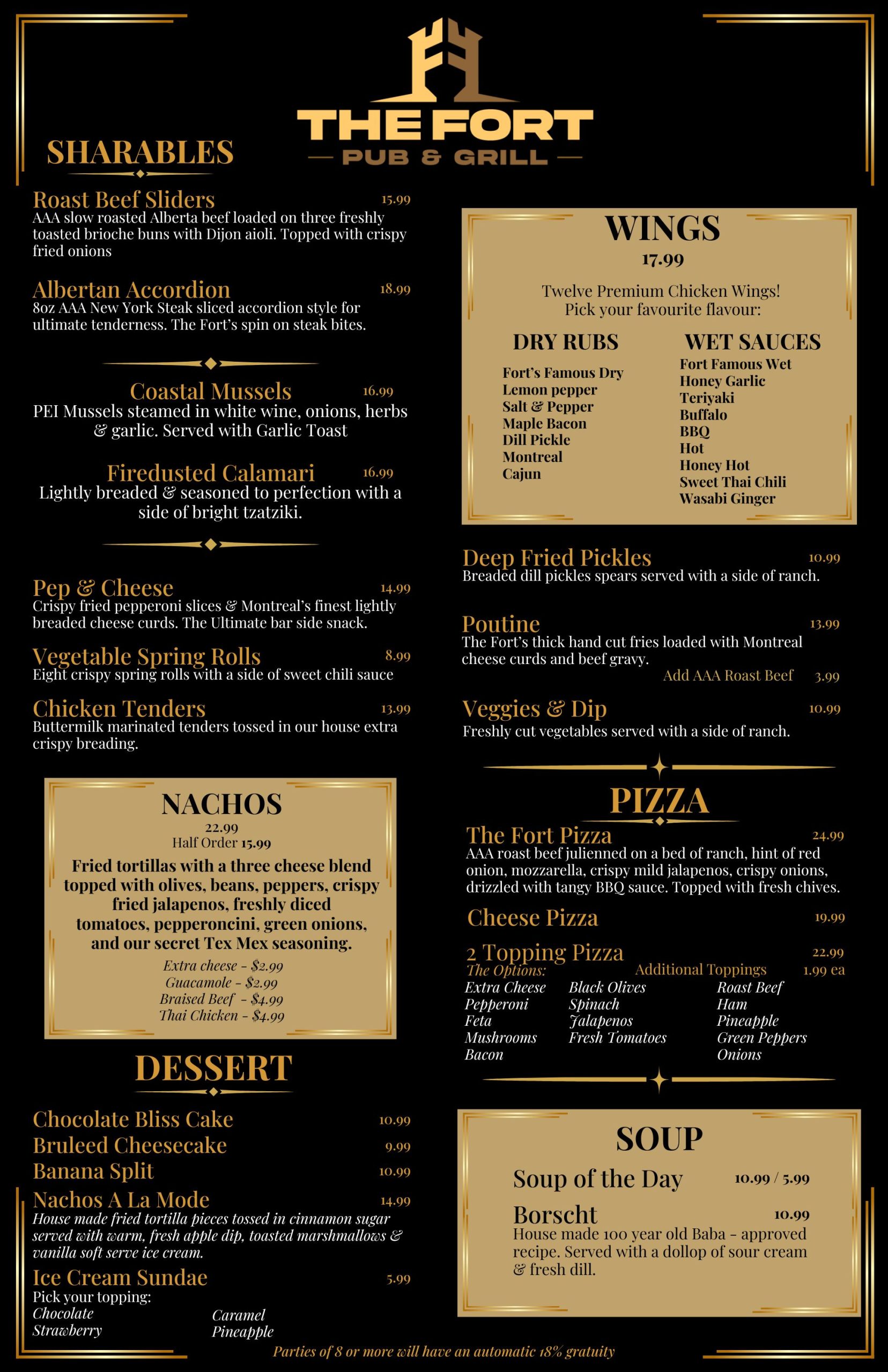 Pub & Grill on Fort Rd NW in Edmonton is your go-to neighborhood spot, Open Sun to Thurs from 11 AM to 11 PM | Fri & Sat 11 AM to 2 AM. Located on Edmonton’s historic Fort Road, we offer a cozy, family-friendly atmosphere where Kids are welcome to 9 PM. Our menu boasts classic pub favorites like juicy burgers, savory soups, and daily specials, all made with fresh ingredients and a touch of tradition. Whether you’re meeting friends or dining with family, The Fort is the perfect place to unwind and enjoy great food. Join us for live entertainment Thursday through Saturday! Make every visit a fun and welcoming experience at